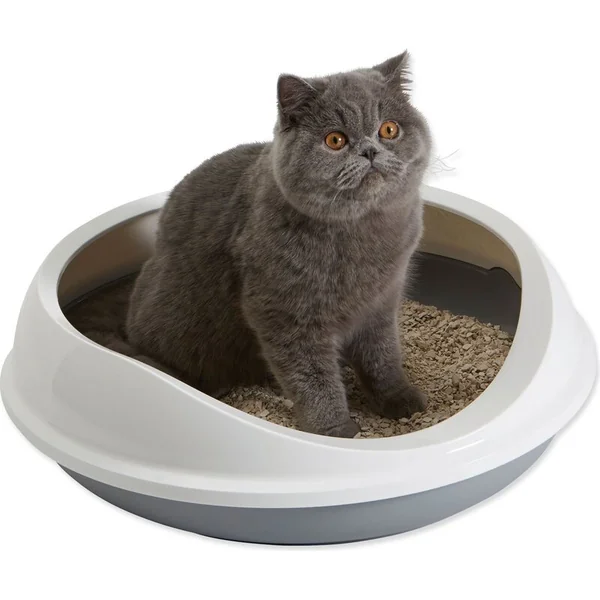 Toilette en plastique avec bord pour chats.