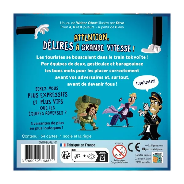 Tokyo Train est un jeu d’ambiance qui se joue en équipe, de 4 à 8 joueurs dès 8 ans, édité par Cocktail Games.