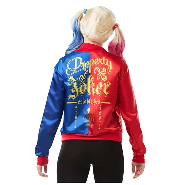 Une veste satinée rose et bleue avec imprimé à l’arrière « Property of Joker established since 4 ever».