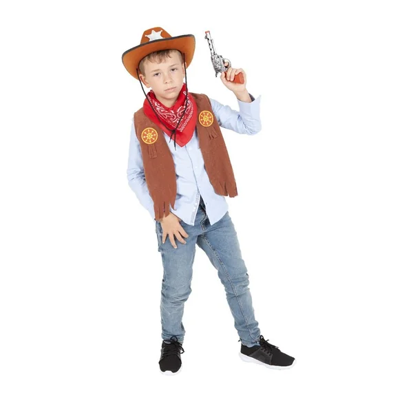 Top et accessoires Cow-boy : chapeau, revolver et bandana