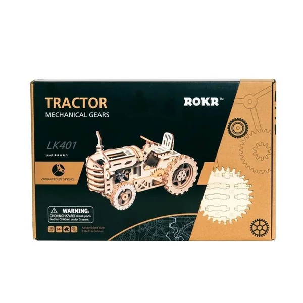 Mécanisme de déplacement, entraîné par la puissance du ressort métallique, le tracteur ROKR LK401 est un jouet de véhicule agricole robuste et robuste.