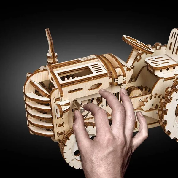 Découvrez Tracteur du Limousin – Puzzle 3D Mécanique en bois de Rokr pour les amoureux des jeux de Construction de 14 à 99 ans.