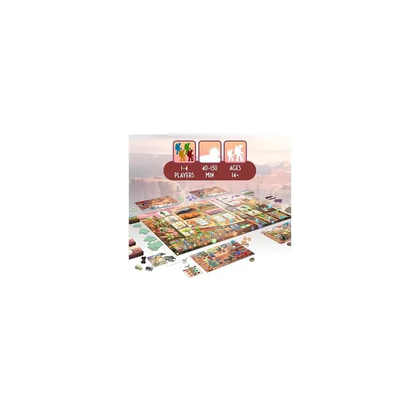 Les joueurs feront appel aux légendaires Jackalope et Lost Dutchman pour les aider dans leur voyage. L’ordre du tour est déterminé pour chaque tour de déplacement et d’action grâce à un mécanisme de mouvement et d’observation unique. Les joueurs devront acquérir un mélange intéressant de ressources naturelles et personnelles clés pour obtenir des avantages et créer leur propre fresque murale des merveilles de l’Arizona grâce à un placement efficace de représentations polyominos.