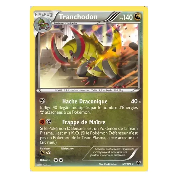Découvrez Tranchodon (plb069), une carte Pokémon de l’extension Explosion Plasma, provenant du bloc Noir & Blanc. Idéale pour compléter votre collection, cette carte Holo Rare plaira autant aux collectionneurs qu’aux joueurs.