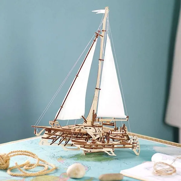 Le modèle Trimaran est un voilier multicoque classique conçu pour montrer de nombreux détails tels que des treuils, des gréements et des coques, ce qui en fait une copie miniature très réaliste de prototypes réels.