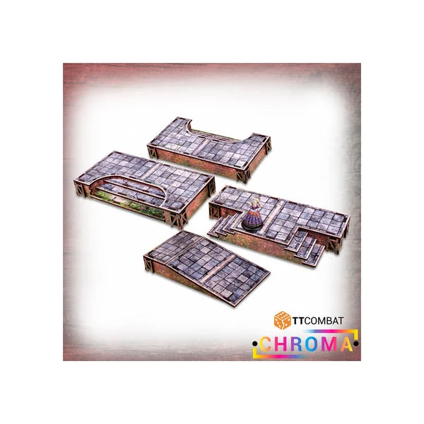 Le kit Venetian Steps est fabriqué en MDF pré‑coloré de 3 mm, imprimé avec une encre UV durable. C’est un excellent élément de décor pour vos jeux de combat futuristes et il s’intègre parfaitement aux figurines et parties à l’échelle 28‑32 mm.
