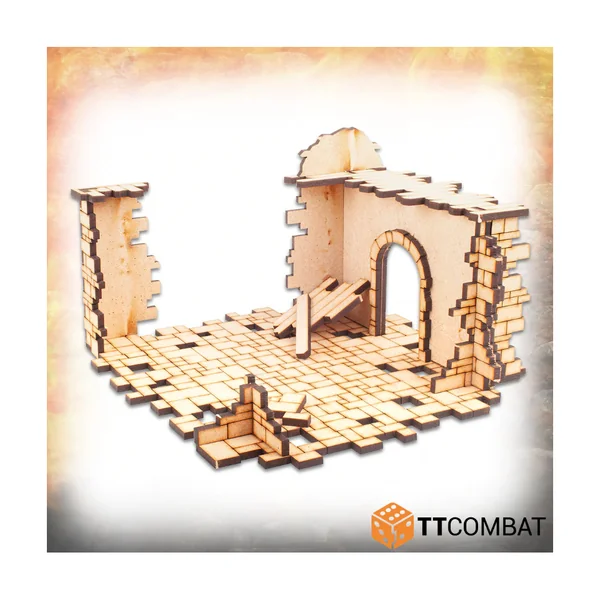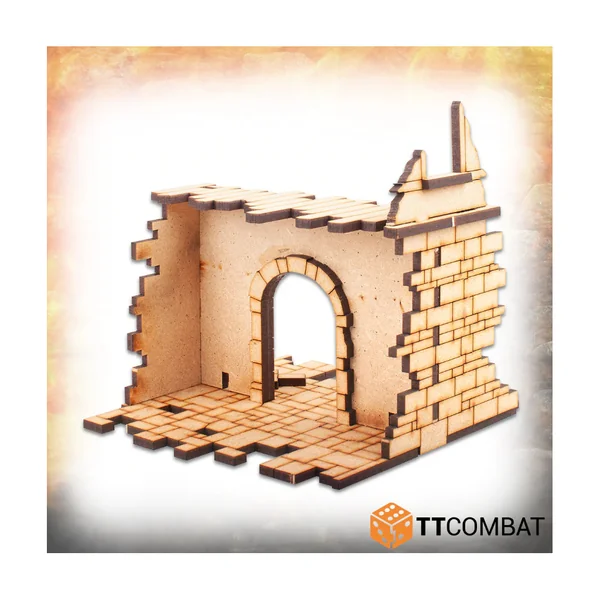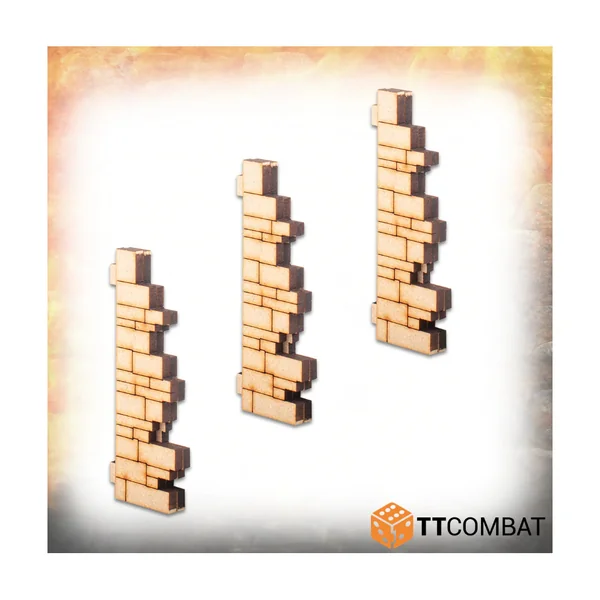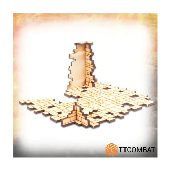 Les ruines de Tumbledown constituent un vaste ensemble de bâtiments en ruine modulaires et de passerelles pour les relier, ce qui vous permet de configurer votre carte de bataille différemment à chaque fois. Chaque section comporte des cases de 25 mm cachées parmi les tuiles de pierre, ce qui permet d’utiliser ce kit pour des jeux de rôle sur table ou des wargames d’escarmouche.