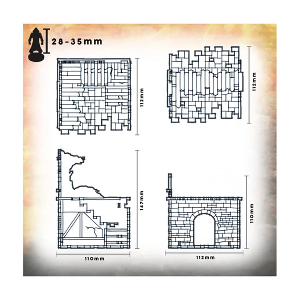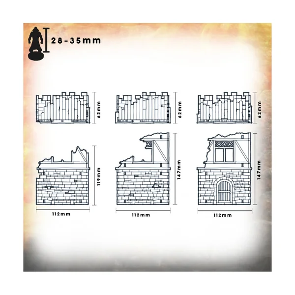 Ce kit est fabriqué en MDF de 3 mm et convient parfaitement aux jeux et aux figurines de 28 à 32 mm. Le modèle est livré non peint et doit être assemblé. Nous conseillons d’utiliser de la colle PVA pour obtenir les meilleurs résultats.