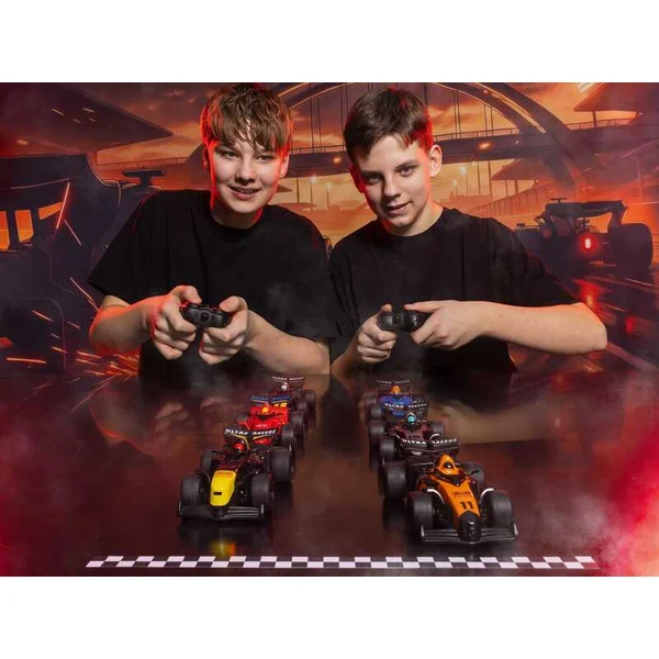 Votre course surprise commence maintenant ! Êtes-vous prêt pour un maximum d’excitation avant même de commencer ? Avec les Ultra Racers – Série 2, vous n’achetez pas seulement une voiture télécommandée, vous achetez un secret ! Dans chaque boîte stylée se cache l’un des six coureurs rapides de la série « Formula Speed ». Quel design allez-vous déballer ? Peut-être aurez-vous la chance de trouver le rare et très prisé « Ultra Race Design » ! Pourquoi ces mini coureurs sont-ils si amusants ? Moment de surprise : Vous ne savez jamais lequel des 6 designs cools va apparaître. La chasse au rare « Ultra Race Design » est en cours ! Fusée de poche : Avec une longueur de seulement 7 cm, ces rapides se glissent dans n’importe quelle poche. Idéal pour des courses spontanées sur la table à la récréation ou dans le couloir. Courses sans interférence : Grâce à la technologie 2,4 GHz, vous pouvez contrôler plusieurs voitures en même temps avec vos amis. Pas de croisement de signaux, juste un pur combat pour la première place ! Rallye nocturne : Grâce à l’éclairage LED, les formules ont fière allure même dans l’obscurité ou en passant sous les tunnels sous le lit. Action instantanée : La commande simple est accessible aux enfants dès 4 ans. La batterie dure jusqu’à 15 minutes de course pure. Contenu de l’emballage : 1x modèle Ultra Racer (design aléatoire de la Série 2) 1x télécommande 2,4 GHz Manuel d’utilisation
