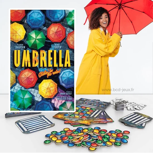La mécanique est « simple comme un slide » ! Exemple : prenez un parapluie à droite, faites le glisser de droite à gauche sur une des 4 ligne de sa scène, le parapluie qui resort de l’autre côté est posé sur la zone d’attente à sa gauche et le tour est terminé. Vous avez donc 4 possibilités de « slide » en vertical et en horizontal ! Avec cette mécanique simple, vous devrez réaliser des « combinaisons » que nous appelons « chorégraphies », sur votre plateau afin d’obtenir un jeton score que vous placerez sur notre plaquette de score. En fonction des couleurs de parapluies que vous aurez choisi pour réaliser les chorégraphies, vous pourrez optimiser votre score et marquer plus de point. L’expérience est très satisfaisante car les joueurs et joueuses auront toujours le sentiment de remplir des chorégraphies même si les autres joueurs, parfois, prennent de l’avance !