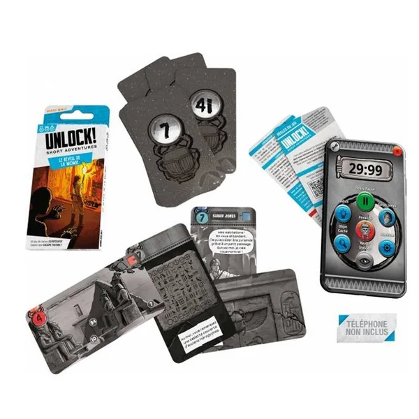 Unlock Short Adventures, ce sont des Unlock de 30 à 45 minutes en petit format, pratique à mettre dans la poche ou à offrir pour faire découvrir le jeu. Unlock ! est un jeu de carte coopératif inspiré des escape rooms. Unlock! vous fait vivre ces expériences chez vous, autour d’une table. Après avoir pris connaissance du contexte du scénario, vous commencez votre aventure dans une pièce (une carte de lieu qui indique divers numéros). Fouillez-la pour trouver des objets ! Attention : certains peuvent être cachés ! Des énigmes visuelles ou audio ralentissent votre progression. À vous de coopérer avec vos partenaires pour avancer et terminer dans les temps.