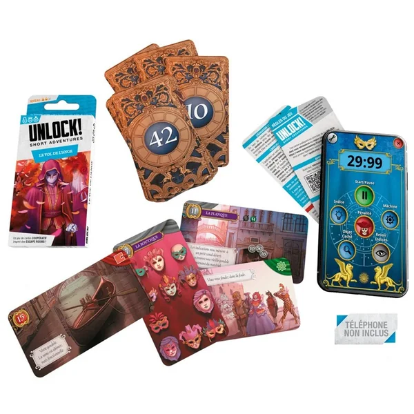 L’application gratuite Unlock !, compatible avec les téléphones et tablettes Android et iOS, est nécessaire pour jouer. Elle permet d’obtenir des indices, de repérer des objets cachés, mais aussi d’entrer les codes découverts. L’application rend le jeu très concret. Elle contribue à l’ambiance avec ses musiques dédiées à chaque aventure, ses énigmes audio, ses terribles pénalités et son compte à rebours fatal.