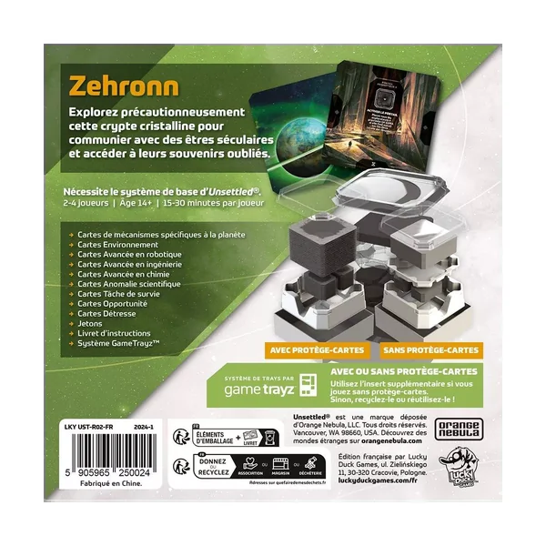 Cette extension pour Unsettled vous invite à explorer la planète Zehronn : Un labyrinthe caverneux rempli d’anciennes formations cristallines. Les corps énormes d’une étrange espèce extraterrestre sont ensevelis dans ces cristaux.