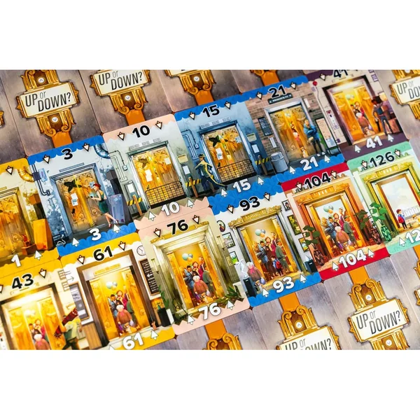 Dans Up or Down ?, les joueurs construisent des colonnes de cartes ascendantes et descendantes qui rapportent des points à la fin de la partie. Plus il y a de cartes de la même couleur dans une colonne, plus vous marquez de points. Celui qui totalise le plus de points à la fin de la partie gagne !