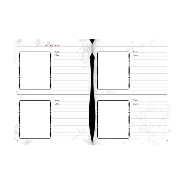 Gardez trace de votre vampire et de votre chronique avec le Journal personnel de Vampire : la Mascarade. Ce journal de 80 pages contient une fiche de personnage étendue, des invitations à développer votre historique, de quoi prendre note des membres de votre coterie et de votre domaine, et garder une trace de qui est qui dans votre chronique. La seconde partie du Journal est destinée aux notes de session de jeu, vous permettant ainsi de conserver un archivage complet de la non-vie de votre personnage.