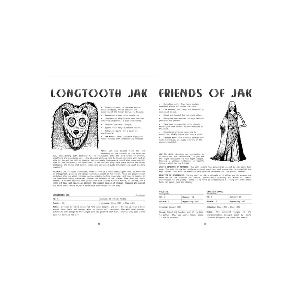 - Des tables de génération pour créer : cartels marchands, maisons nobles, tavernes, arènes de combat, guildes philosophiques, gangs criminels et ordres religieux – avec des tables de drame associées pour générer des intrigues dynamiques.