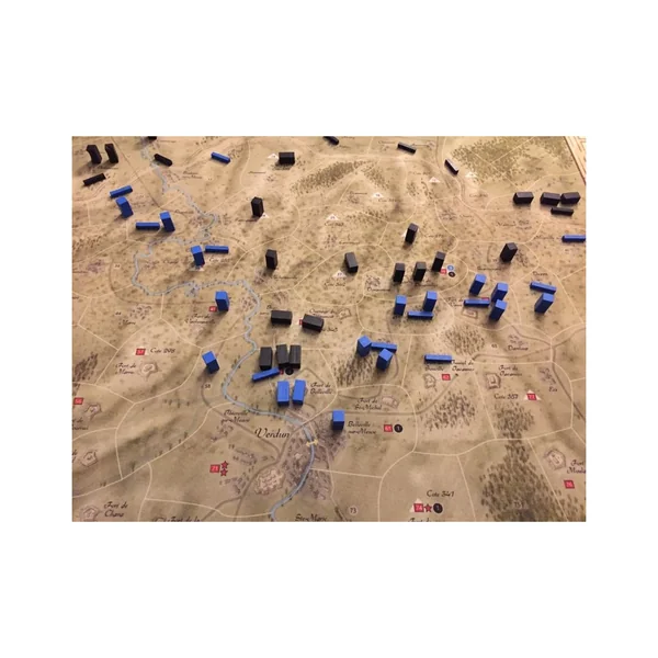 Les troupes sont représentées par des cubes en bois représentant de façon abstraite des brigades, que les joueurs manœuvreront sur la carte,Les joueurs devront faire des choix difficiles, continuer à renforcer Verdun en utilisant les ressources de leurs cartes ou jouer les événements pour obtenir des points de victoire ailleurs.Les deux camps ont tour à tour l’initiative, au début les allemands sont sur l’offensive puis les français passent à la contre-offensive fin 1916.