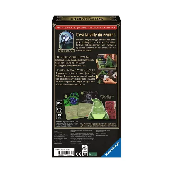 Rempli d’effroi est une extension pour Villainous, dans lequel vous incarnez Oogie Boogie dans le but de devenir le pire méchant de tous les temps ! Utilisez astucieusement vos capacités spéciales et tentez de ruiner les plans de vos adversaires.
