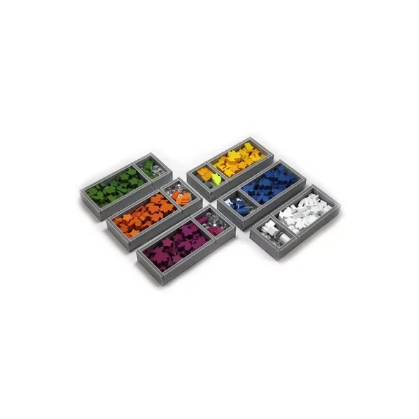 Rangement pour Boîte Viticulture et les extensions Toscane, Les Saisonniers de la Vallée du Rhin et Les Saisonniers de la Lande de la marque Folded Space. La conception offre à la fois un stockage efficace et un jeu amélioré. De nombreux plateaux peuvent être utilisés pendant le jeu et facilitent grandement les temps de préparation et de rangement.