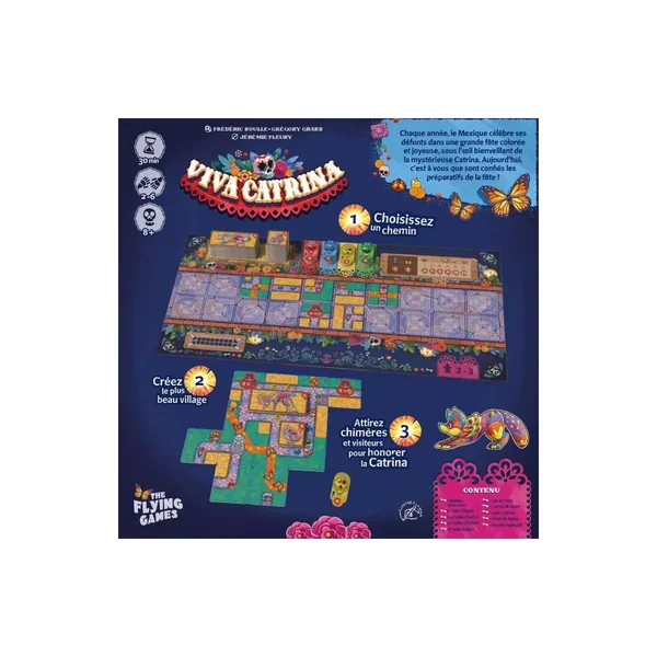 Viva Catrina est un jeu de société de stratégie jouable de 2 à 6 joueurs, dès 8 ans pour des parties d’environ 30 minutes, édité par The Flying Games.