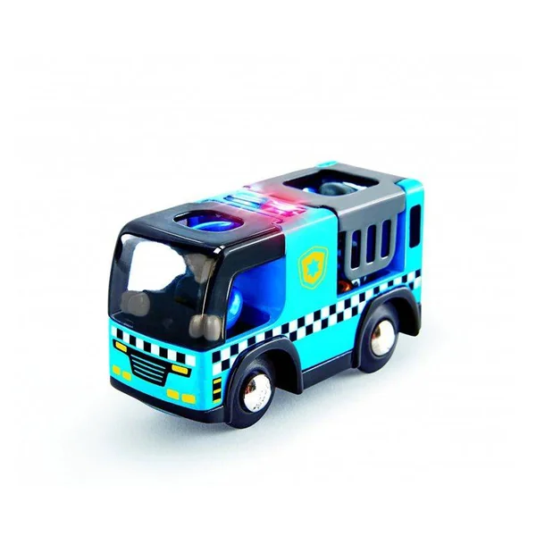 Avec la voiture de police avec sirène de Hape pour les enfants à partir de 3 ans, pourchasser le voleur en cavale.