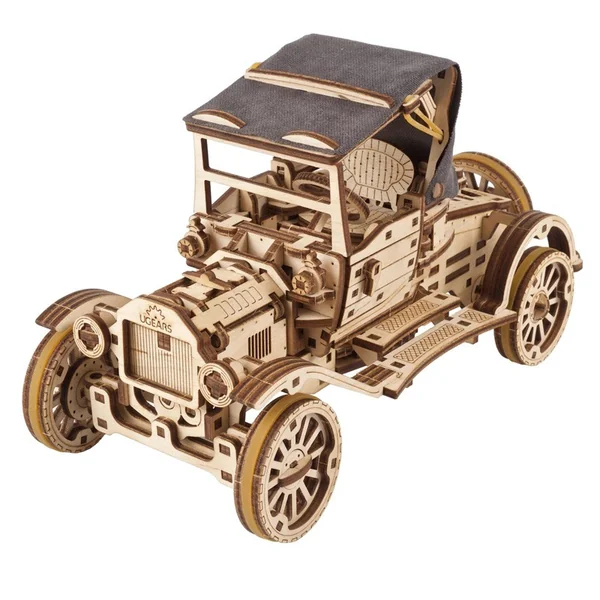 La Voiture rétro UGR-T est une élégante addition à la collection grandissante de voitures historiques, modernes et de course, de motos, de camions et autres maquettes automobiles à monter soi-même Ugears.