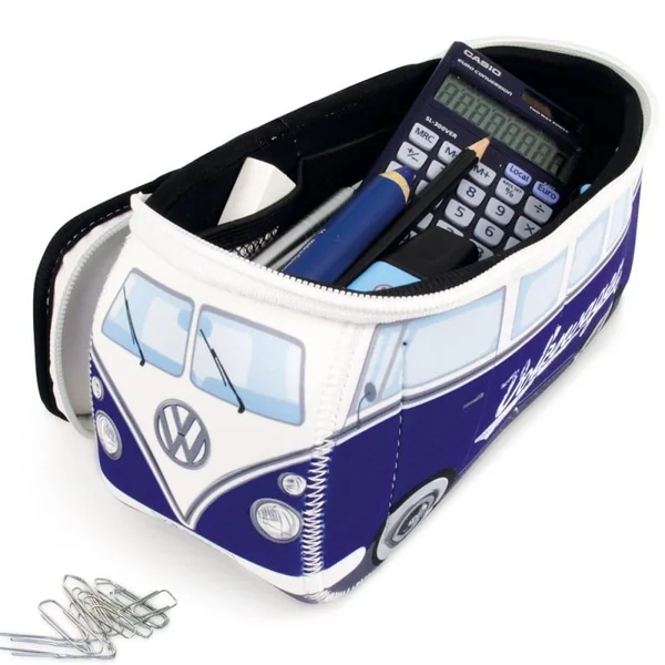 Cette magnifique trousse a l’apparence de l’ancien fourgon Volkswagen dans la couleur bleue. La trousse possède un grand compartiment principal qui peut être fermé avec une fermeture éclair.