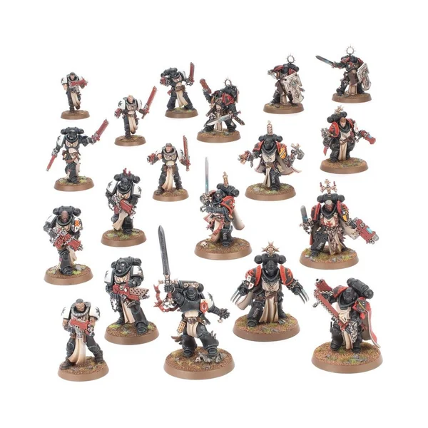 Ce set permet d’assembler 19 figurines en plastique des Black Templars: