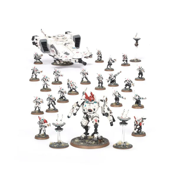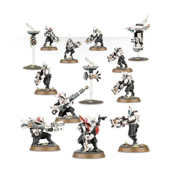 Combattez pour le Bien Suprême avec la Patrouille: Empire T’au! Cette boîte contient une force équilibrée d’unités polyvalentes qui vous offrent assez de mobilité et de puissance de feu pour nettoyer le champ de bataille. Cette boîte vous permet également de faire des économies par rapport à un achat des kits au détail, ce qui en fait un excellent moyen de démarrer votre armée ou de renforcer une collection existante. Ces figurines peuvent également être utilisées comme force de l’Empire T’au complète pour les parties de Warhammer 40,000 au format Patrouille. Les règles de ce format sont disponibles en téléchargement gratuit sur le site de Warhammer Community.