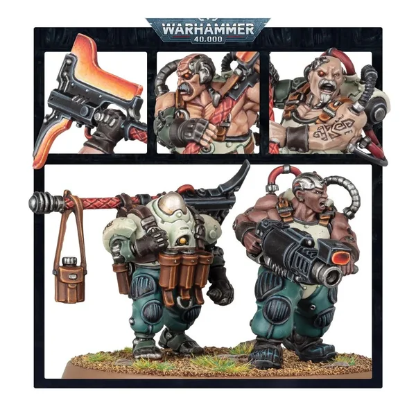Ce set contient 117 éléments en plastique et est fourni avec 5x socles ronds Citadel de 50 mm et une planche de décalcos des Ligues de Votann avec 555 chiffres, runes et marquages des Ligues dominantes. Ces figurines sont fournies non peintes et nécessitent assemblage