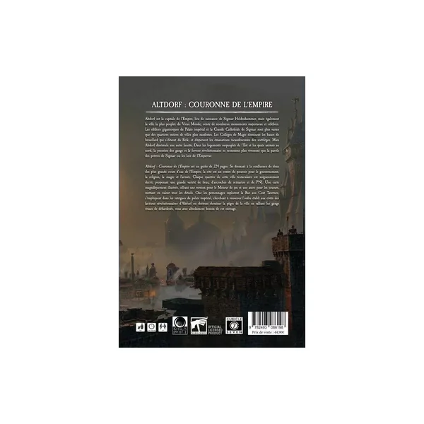Altdorf Couronne de l’Empire est un guide de 224 pages. Se dressant à la confluence de deux des plus grands cours d’eau de l’Empire, la cité est un centre de pouvoir pour le gouvernement, la religion, la magie et l’armée.