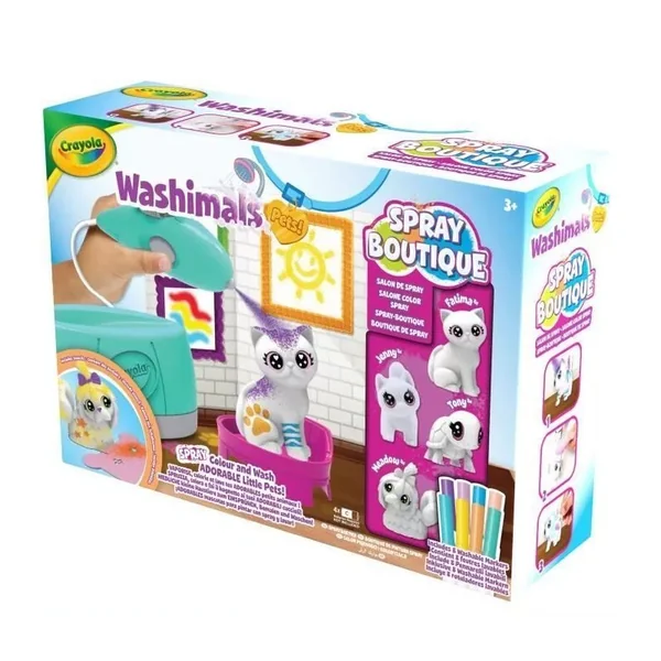 Découvrez une nouvelle manière de personnaliser vos adorables chiots Washimals avec la spray boutique signée Crayola ! Ce kit interactif et ludique permet aux enfants de décorer leurs chiots grâce à un aérographe innovant et des feutres lavables. Ils peuvent utiliser les pochoirs inclus pour des designs uniques, puis laver les chiots pour recommencer à l’infini. Une expérience de jeu créative et éducative qui garantit des heures de plaisir !