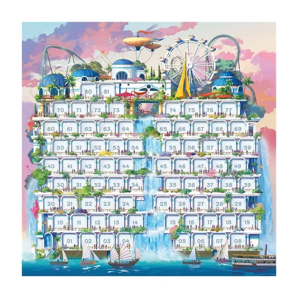 Découvrez « Waterfall Park, » l’expérience de jeu ultime où la construction se mêle à la diplomatie pour créer un chef-d’œuvre de divertissement ! Dans ce jeu captivant pour 3 à 5 joueurs, vous participez à l’élaboration collective d’un parc d’attractions d’un genre tout à fait nouveau — un parc construit en hauteur !