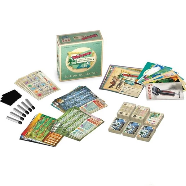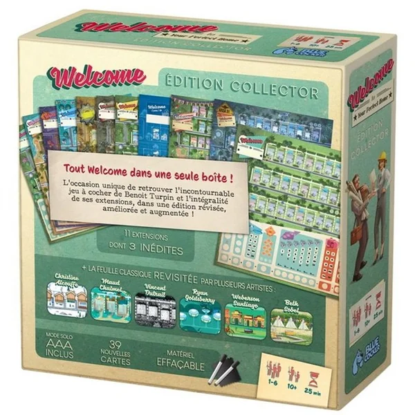 Le fameux flip&write revient dans une édition Collector proposant l’intégralité de la gamme Welcome to your Perfect Home plus 3 extensions, un mode solo pour chaque version, 35 cartes Objectif et 3 cartes Travaux inédits, tout cela avec feutres et fiches effaçables.