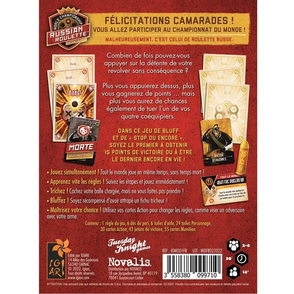 Félicitations camarades ! Vous allez participer au championnat du monde ! Malheureusement, c’est celui de roulette russe.