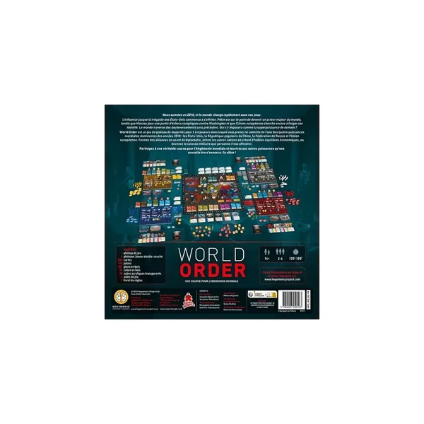 World Order est un jeu de société expert jouable de 2 à 4 joueurs, dès 14 ans pour des parties d’environ 120 minutes, édité par Super Meeple.