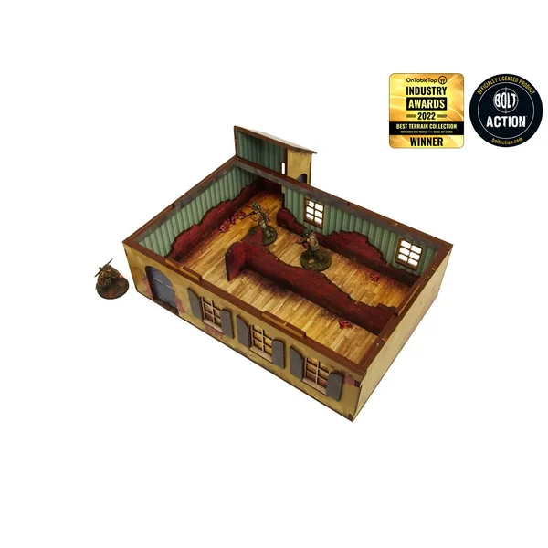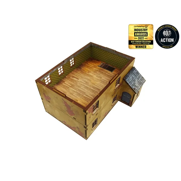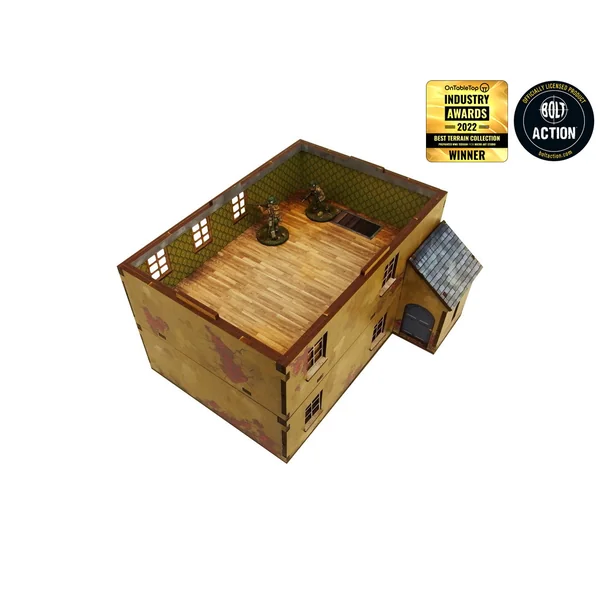 Fenêtres acryliques transparentes prédécoupées incluses. Possibilité d’assembler les volets et les portes ouverts ou fermés. Possibilité d’ouvrir ou fermer la porte durant la partie.