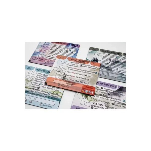 En tant que dracologue en herbe, vous ouvrez une académie pour que les dragons en herbe puissent développer leur plein potentiel ! L’extension de Wyrmspan ajoute une grande variété de nouveaux dragons et grottes, des tuiles d’objectifs, des guildes de dragons et un nouveau compteur de tours qui vous permet de choisir vos revenus lorsque vous passez le tour. Bienvenue dans Wyrmspan : L’Académie des Dragons, conçu par Connie Vogelmann et illustré par Clémentine Campardou !