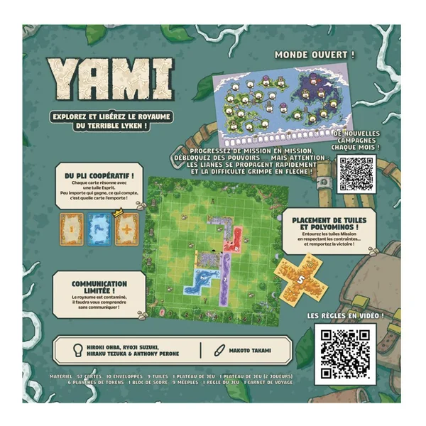 Yami est un jeu de plis coopératif à communication limitée avec des polyominos, le tout dans un monde ouvert, composé de 22 missions indépendantes. Votre objectif ultime : réussir la Mission 22.