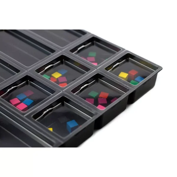 Zacabox – Plateau Modulaire de Rangement permet de classer vos meeples, vos pions et tout ce que vous voulez garder bien rangé sur la table pendant ou après le jeu. C’est une solution de rangement idéale pour toutes vos pièces de jeu et jetons, qui seront plus accessibles que dans des sachets ! Découpez le plateau (avec le couvercle) selon votre goût, vos besoins, la taille des boîtes… puis rangez ce que vous voulez !