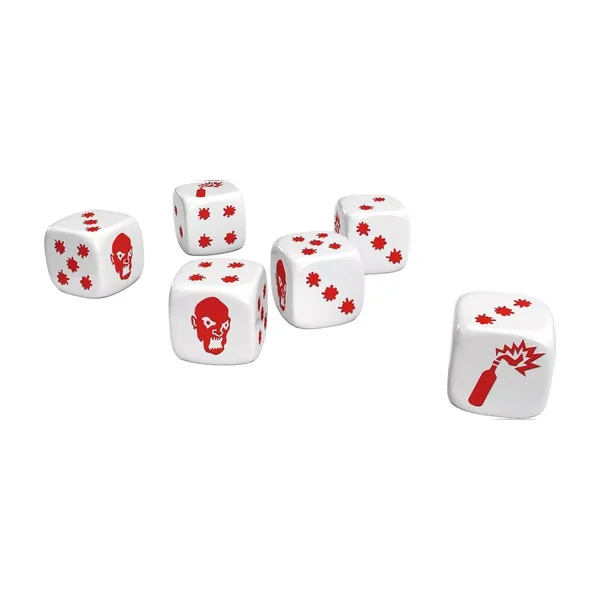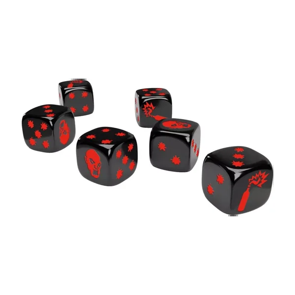 Zombicide : Dés Spéciaux Noirs et Blanc contient 6 dés Zombicide noirs et 6 dés Zombicide blanc.